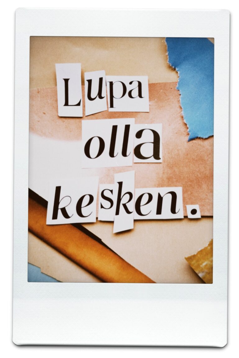 kokonaisvaltaisen asettumisen itsesi äärelle. Riittävänä, keskeneräisenä ja suorittamatta.