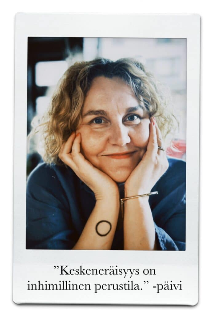 Olen Päivi ja ajattelen, että elämän keskeneräisyys ei ole vain välivaihe matkalla johonkin – se on olemisen tila, jossa elämä oikeasti tapahtuu.